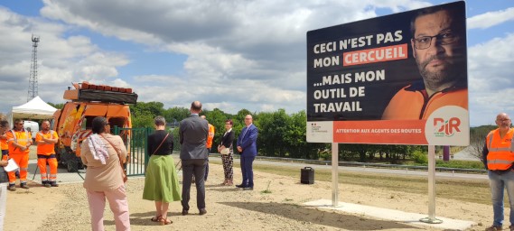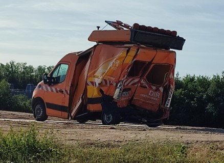Ça n’est pas sur le PAC mais à la Croisière et on ne peut pas l’ignorer quand on vient sur le PAC, depuis plusieurs semaines, la Direction Interdépartementale des Routes du Centre Ouest (DIRCO) a installé au niveau du giratoire de la Croisière un fourgon accidenté et le portrait de l’agent qui en a été victime.