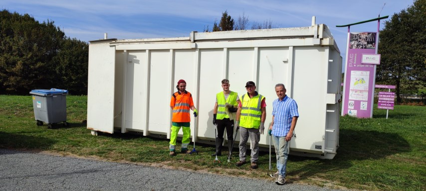 Avec les 3 agents communaux, les déchets ont été ramassés, triés pour remplir 1 bac à roues de matières recyclables (bouteilles et emballage plastiques, canettes et boites métalliques, papiers cartons), 2 bacs de déchets sauvages non recyclables, un fond de bac avec du verre et quelques « encombrants ».